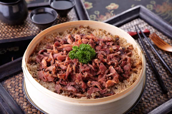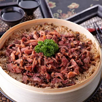 嚴選由合格電宰廠下取得的台灣土番鴨,經由多道專業工法去骨、真空按摩、乾燥、甘蔗煙燻產出深金黃色的鴨賞,加上紅蔥酥、龍眼乾、金鉤蝦、桔餅等八種美味食材下鍋炒香,當粒粒分明的糯米蒸熟後,自然鮮甜的鴨肉湯汁滲入調味,嚼上一口,糯勁十足,增味解膩,暖意上心頭,是家人齊聚時分不可或缺的美味菜餚,慶祝圓圓滿滿,親朋好友分享喜悅的不二選擇