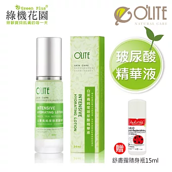 商品推薦:【O’LITE歐莉特】白茶高純度玻尿酸精華液30ml 贈:綠機花園小安第舒膚露隨身瓶15ml